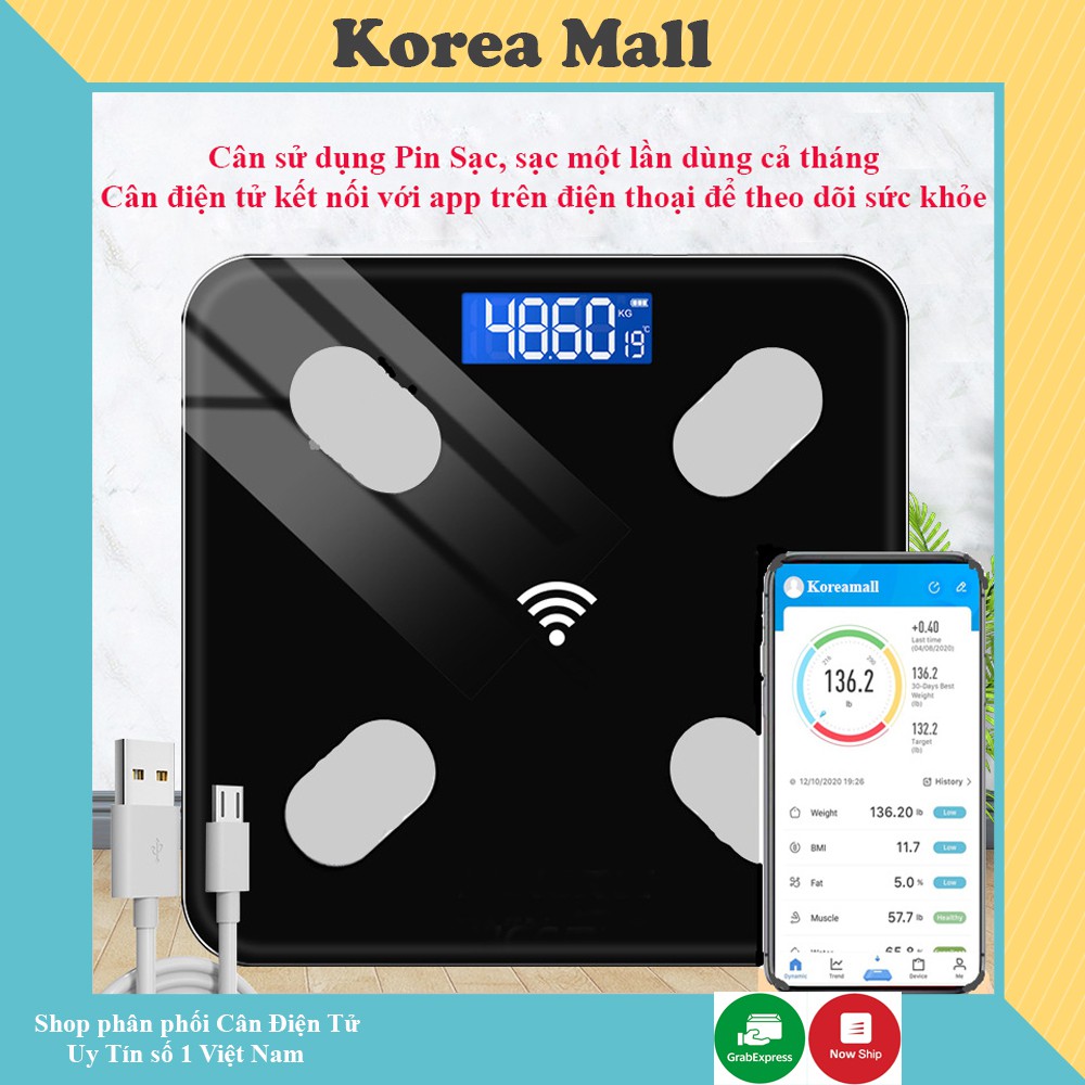 Cân Điện Tử Sức Khỏe Thông Minh Kết Nối Điện Thoại Đo Chỉ Số Sức Khỏe Kiểm Soát Ăn Uống, Hoạt Động Thể Thao free ship