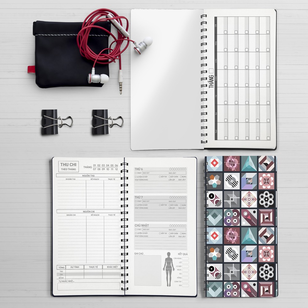 Sổ MIX "Anh Thư Ký" - Kế hoạch Tháng + Tuần + Ngày, Thu Chi, Thể Dục, Ăn Uống - Gáy xoắn 120 trang free ship