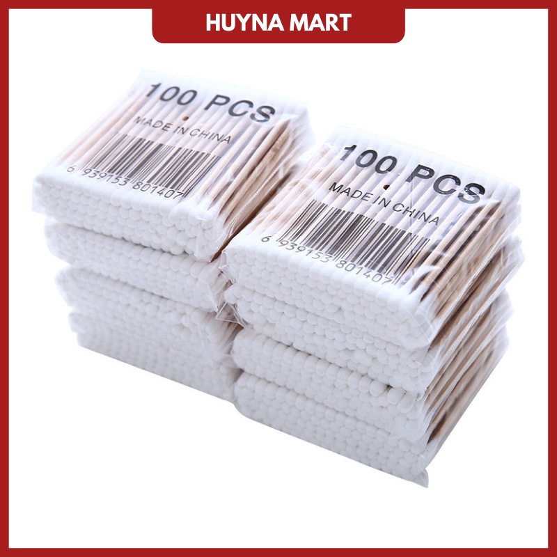 Túi 100 Tăm Bông Thân Gỗ Ngoáy Tai, Vệ Sinh Cá Nhân, Trang Điểm, An Toàn Với Môi Trường Huyna Mart NC54 free ship