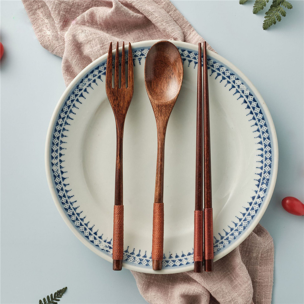 Bộ 3/2 Dụng Cụ Ăn Uống Gồm Muỗng Nĩa Và Đũa Bằng Gỗ Thân Thiện Với Môi Trường Dùng Trong Nhà Bếp Tại Gia free ship